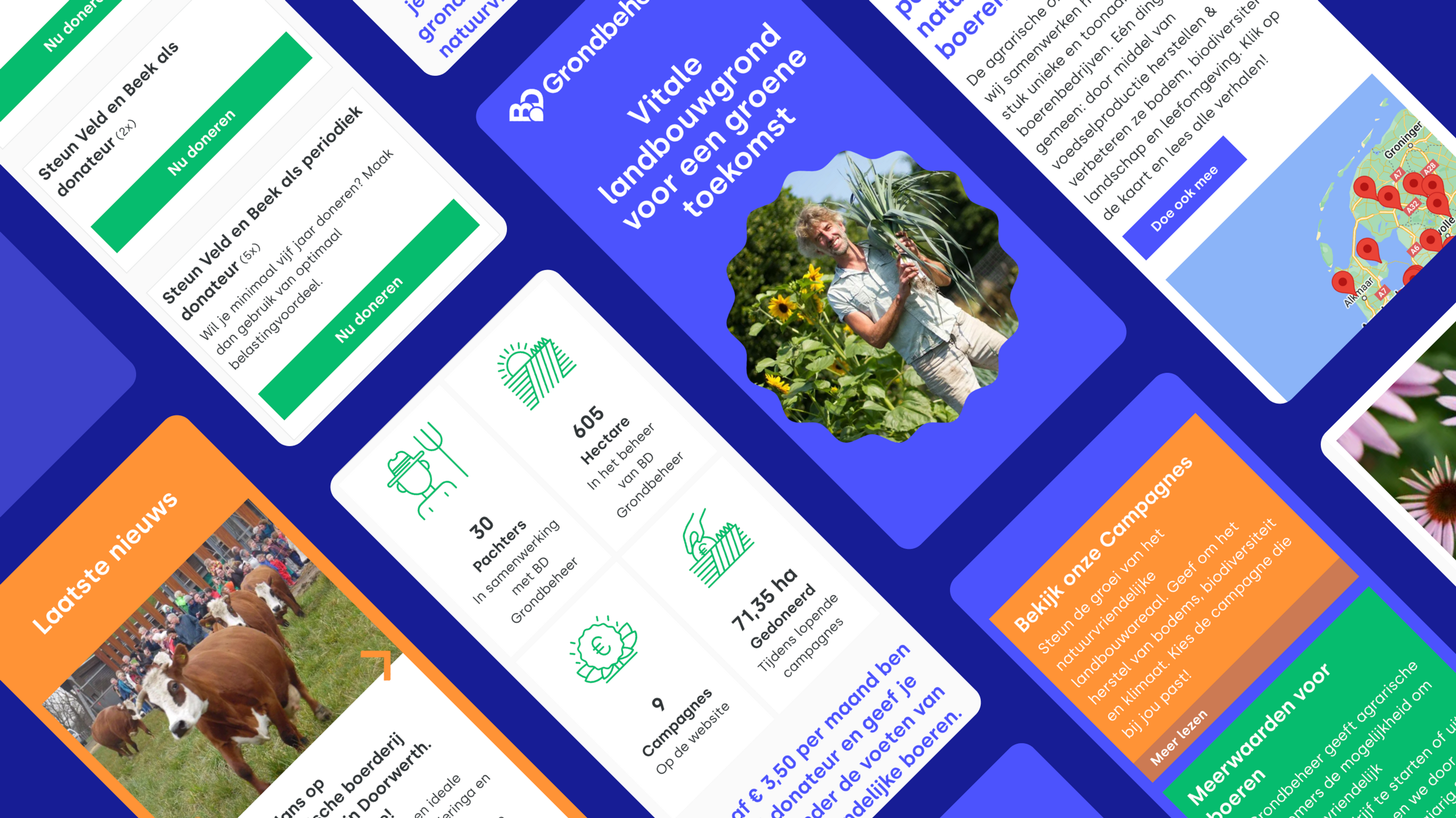Almost 50% of the Netherlands is being used for agricultural purposes. Unfortunately, not all of them use their land in a sustainable way, resulting in the need for artificial manure, tons of carbon dioxide and and a loss in biodiversity. BD Grondbeheer is a non profit organisation that frees up land for farmers that want to do things differently. By gathering donations from people all over the Netherlands, they buy land to make sure it can only be used by farmers with a sustainable way of farming. We got to be part of their amazing journey towards a new brand and platform.